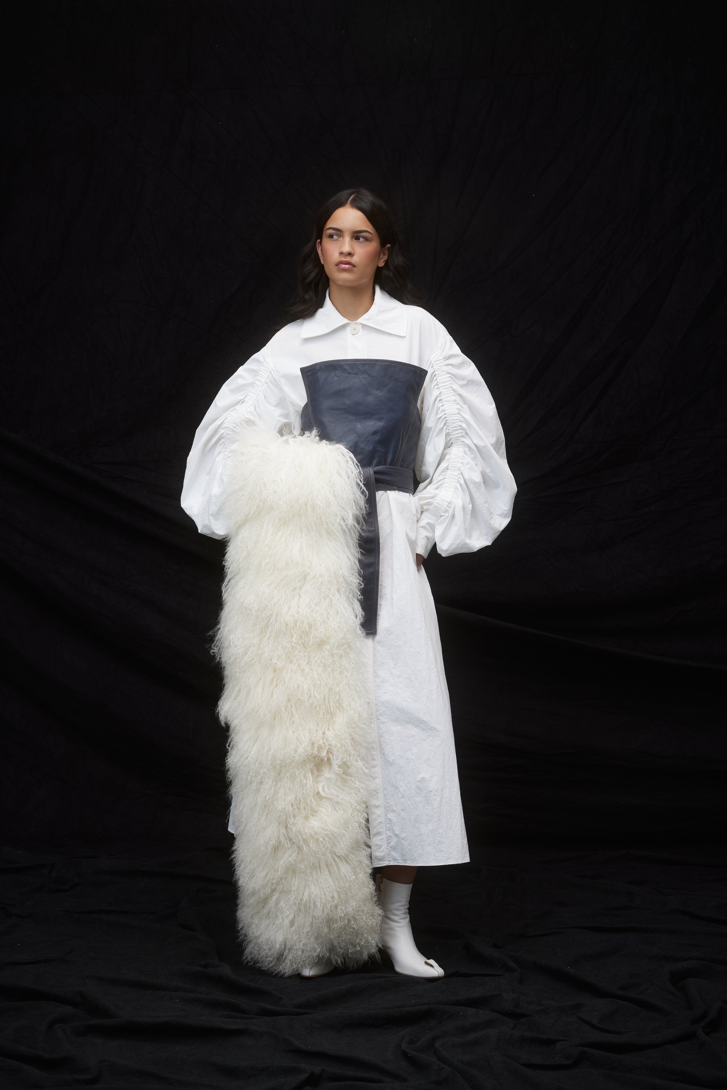 A wardrobe staple with a Claudia Li twist. The Gathered Sleeve Shirt Dress is crafted from