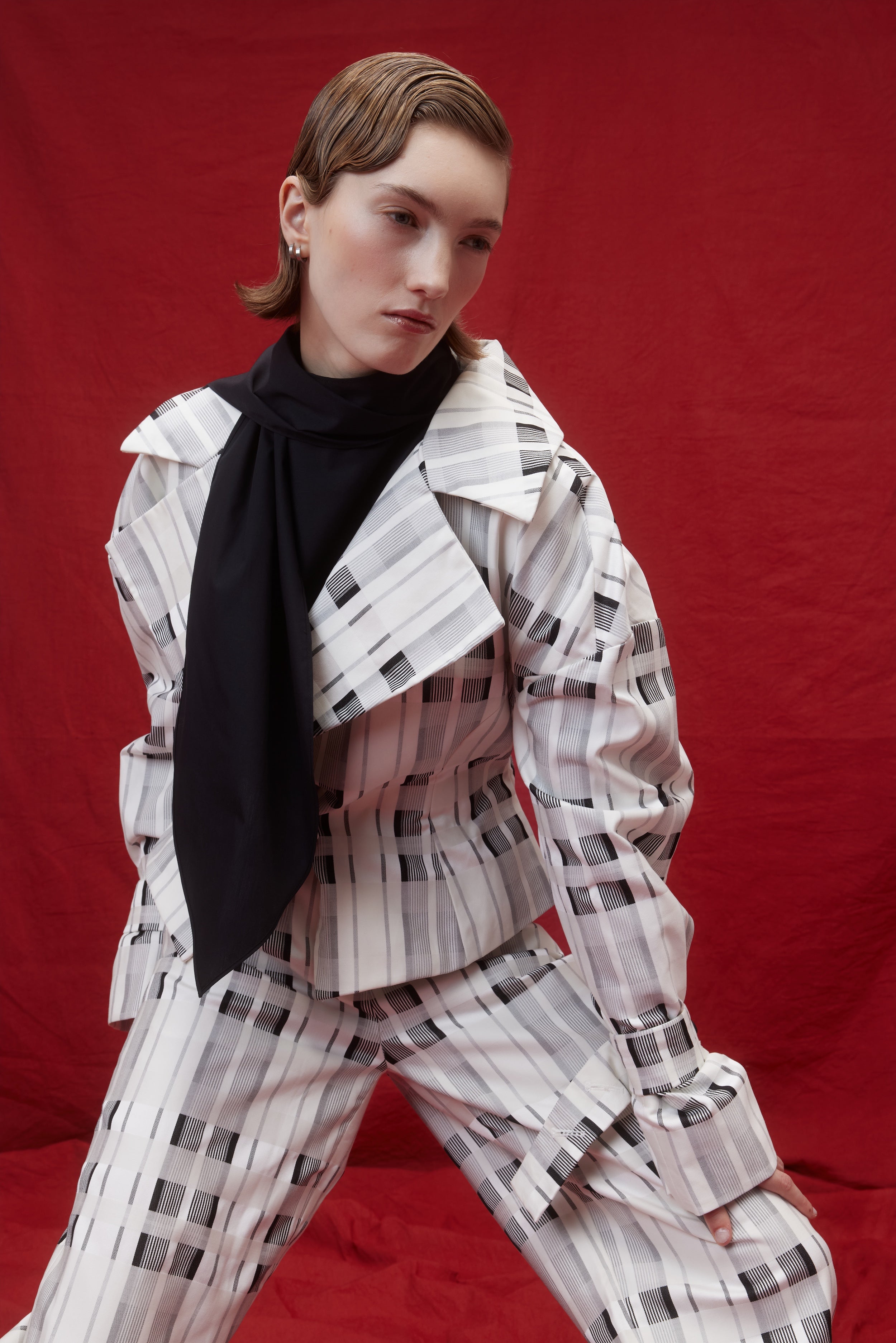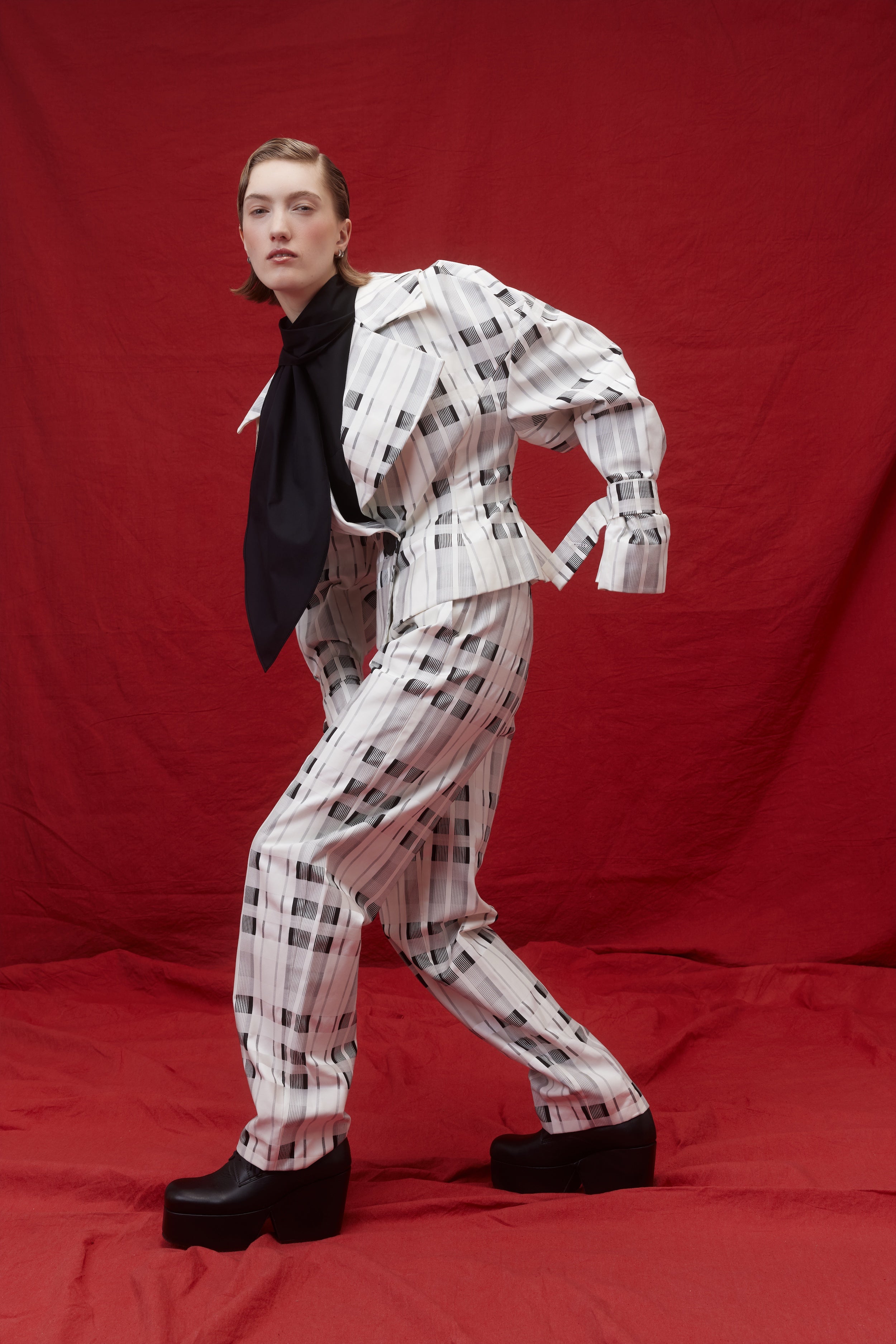 A refined update to a Claudia Li classic. Crafted from structured Italian cotton plaid jacquard, woven at one of Italy’s most distinguished heritage mills, celebrated for its craftsmanship.